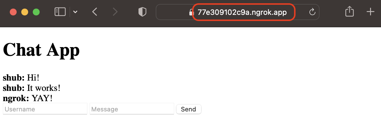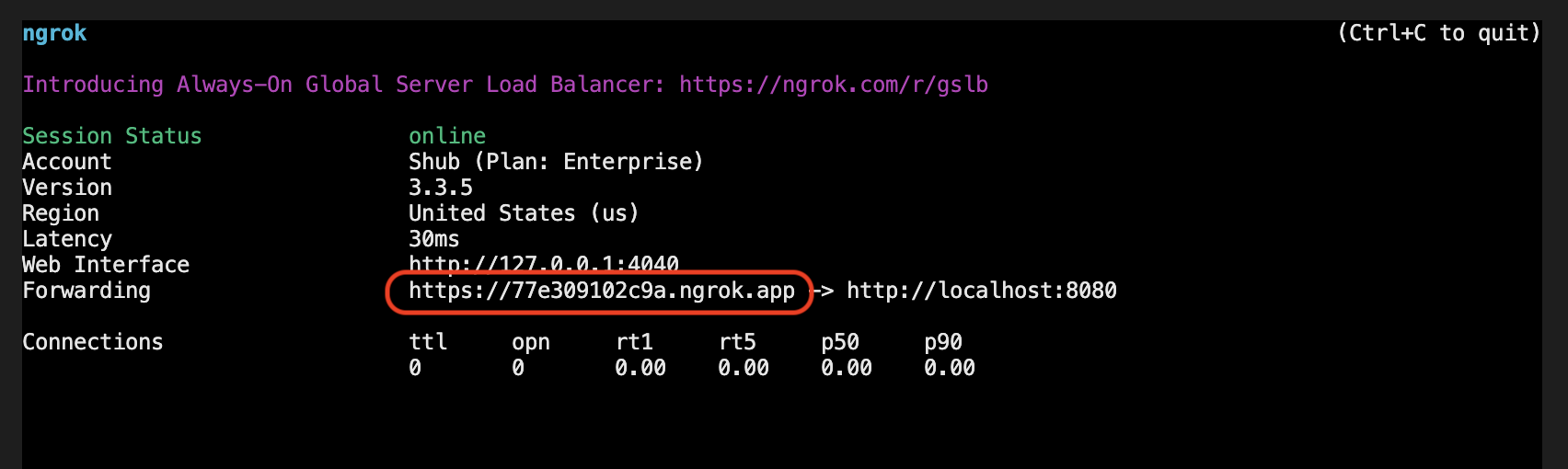 }Now that our application is ready, it's time to test, and to do that we’ll use ngrok. With ngrok, the testing process can be made seamless and efficient. As software engineers, we no longer have to file Jira tickets and wait for infrastructure provisioning from other teams.