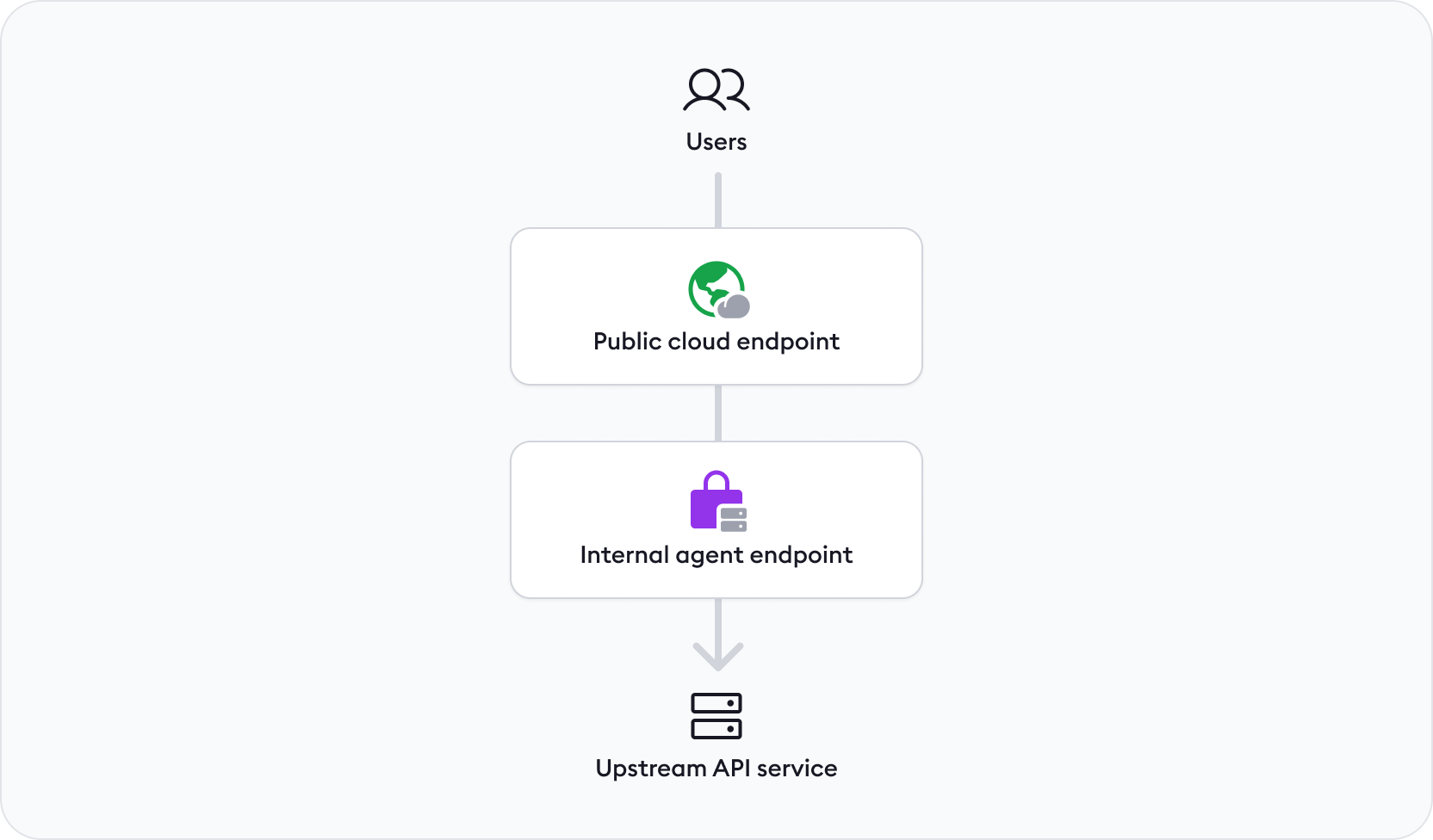 A Cloud Endpoint on a public URL forwards traffic to Internal Agent Endpoints using the forward-internal Traffic Policy action.