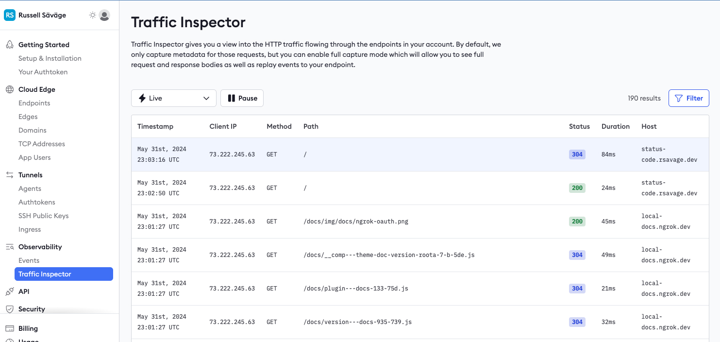 We are excited to look for more opportunities to provide insights into the traffic running through your ngrok account. We have plans for advanced filtering and more tightly integrating this tool into the cloud edges and endpoints that are being created.