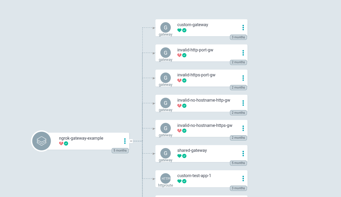Secondly, we’re now setting status conditions on gateways to provide better feedback on whether or not the configuration is valid. You can now look at the status conditions for both the gateway and its listeners to figure out if the configuration has been accepted and if it has been programmed in ngrok’s cloud.
