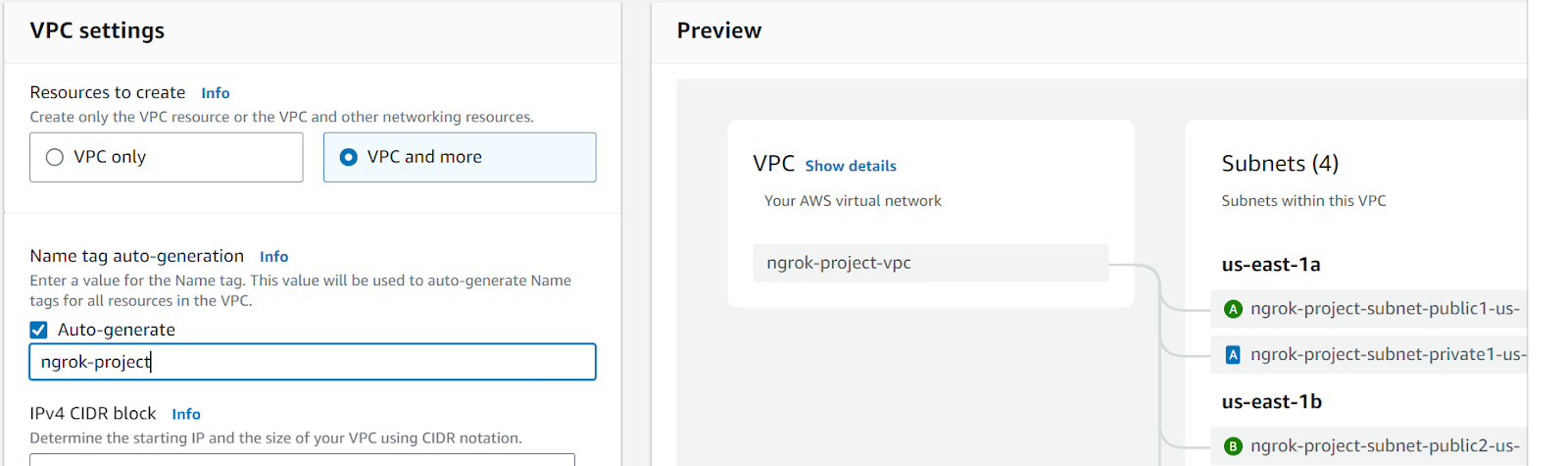 Give your VPC a unique name, like ngrok-project, then click the Create VPC button.