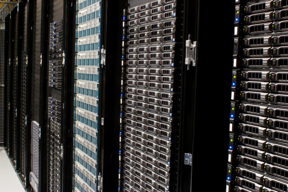 How these servers tend to look inside datacenters. Endless 19-inch racks of computers. These are Dell PowerEdge R510s owned by the Wikimedia Foundation.