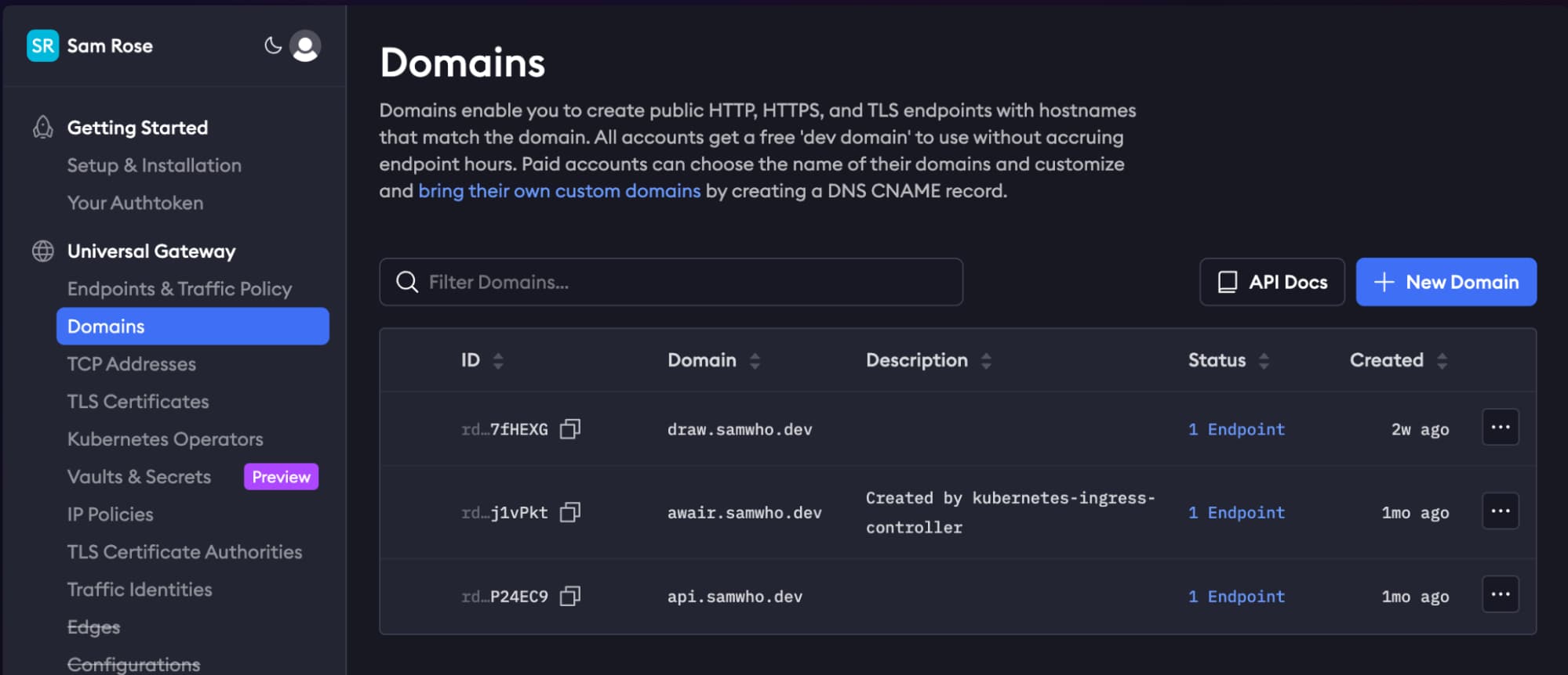 ngrok slots into this setup by replacing Caddy, and with it we get access to features like: