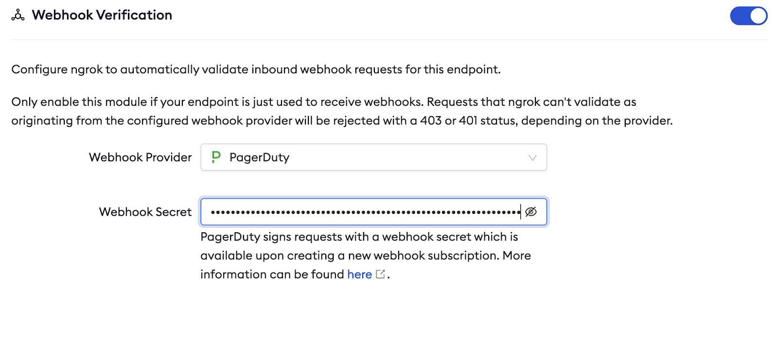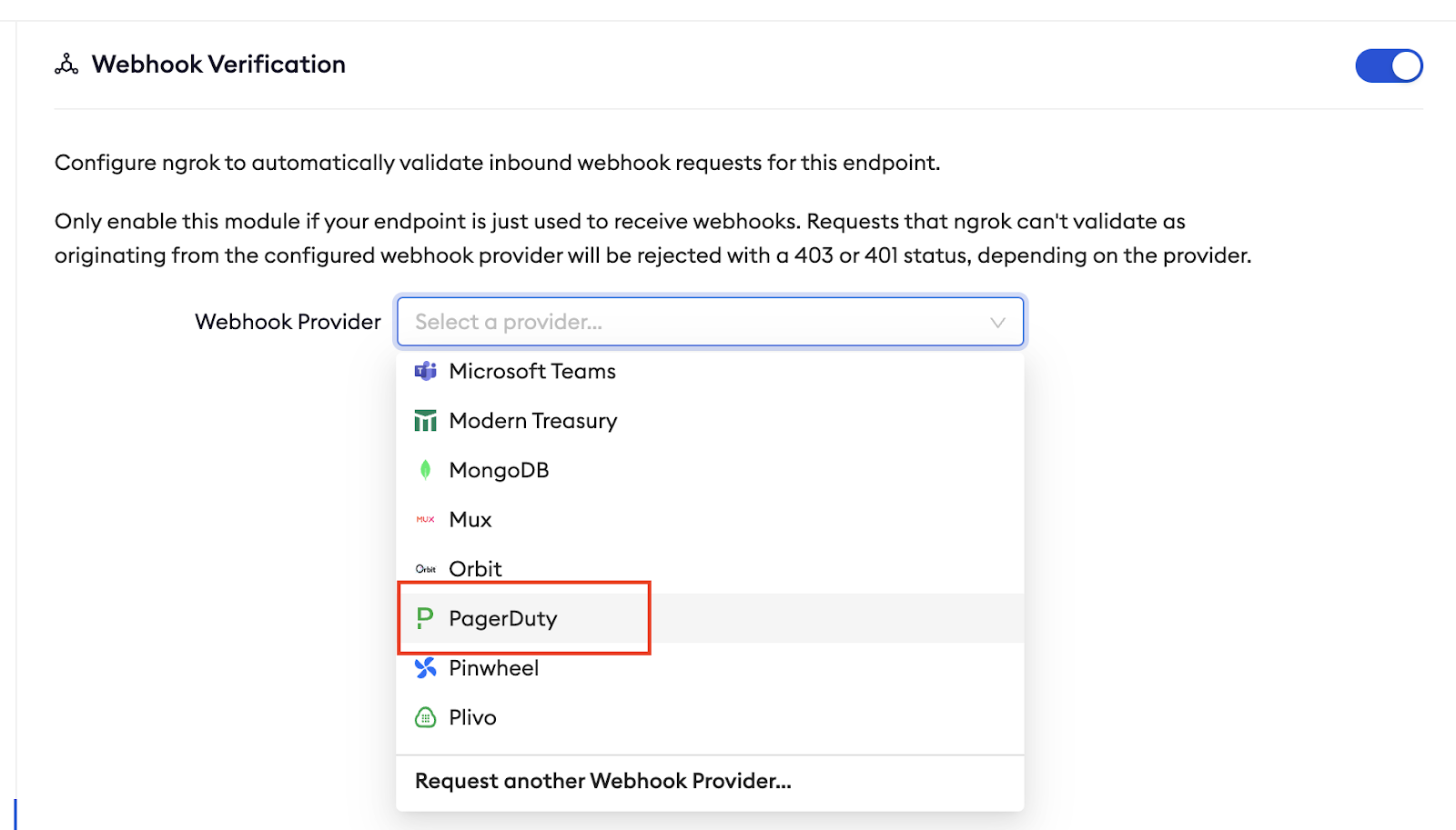 In a previous blog post we covered how to verify PagerDuty webhooks using the ngrok agent. Just by sending a couple arguments with the `ngrok` command you can assert that the webhooks your application is receiving are being sent from the expected source. And if they fail verification, they’re dropped long before reaching your app.