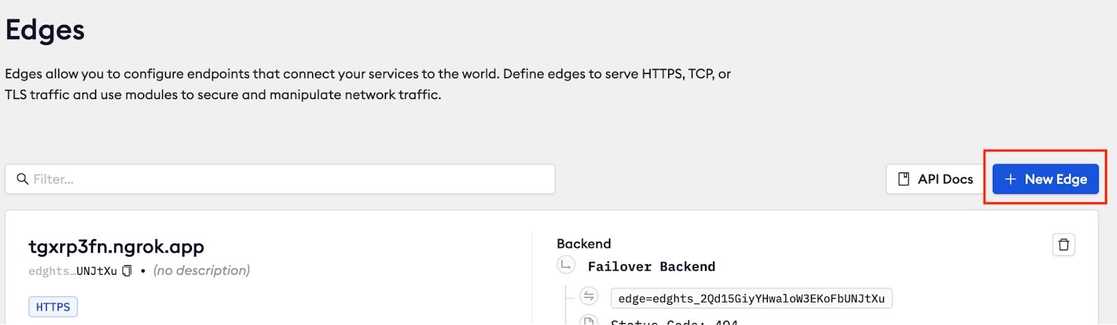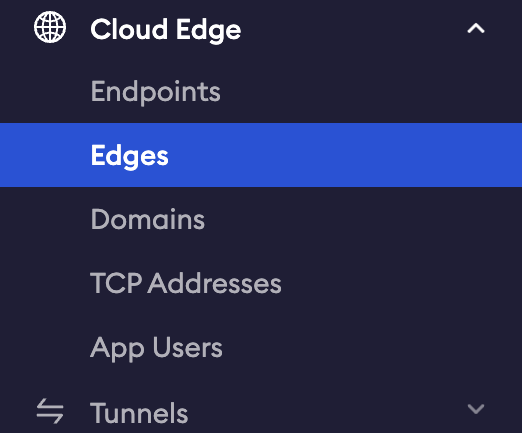 Let’s start by logging in to the ngrok Dashboard and going to the Edges area. You can find the Edges link in the Cloud Edge section of the dashboard side menu.